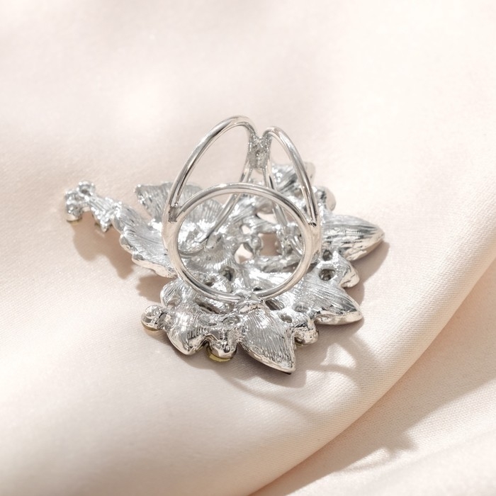 Кольцо для платка «Ажур» цветы, цвет белый в серебре