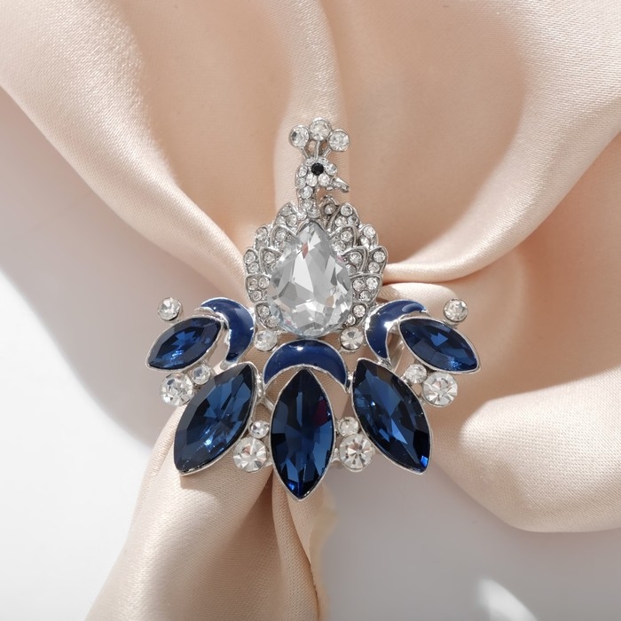 Кольцо для платка «Павлин», цвет бело-синий в серебре