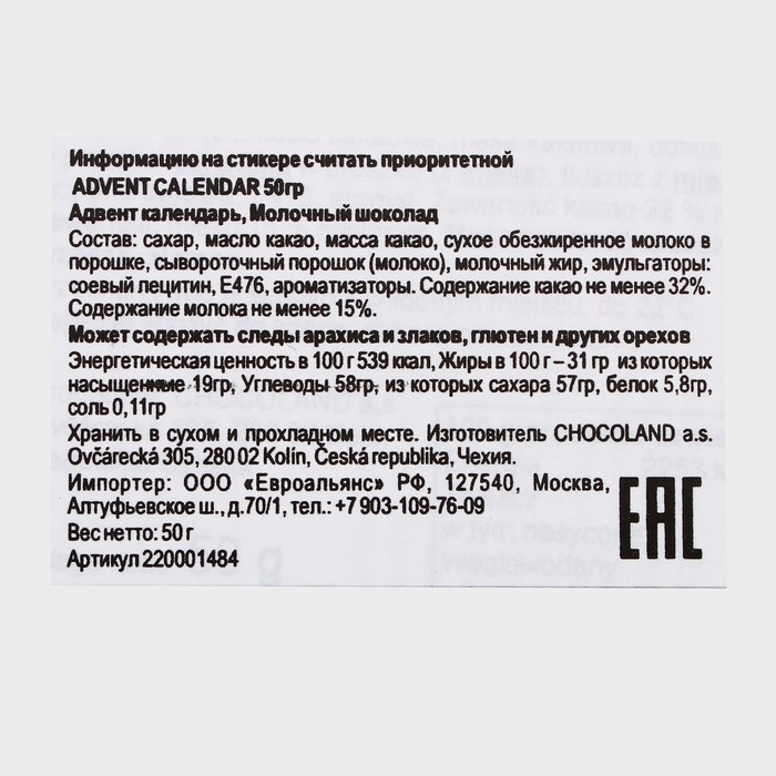 Адвент календарь «Новый год уже на пороге»: с молочным шоколадом, 5 г х 15 шт.