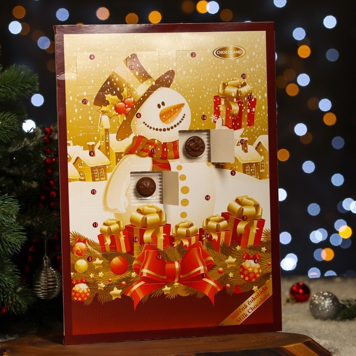 Адвент календарь с мини плитками из молочного шоколада "Снеговик", 50 г, Новый год