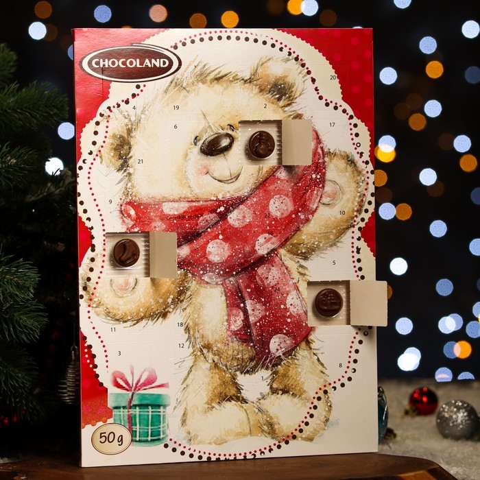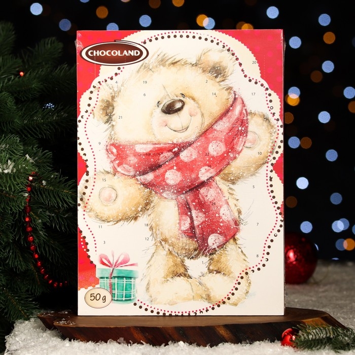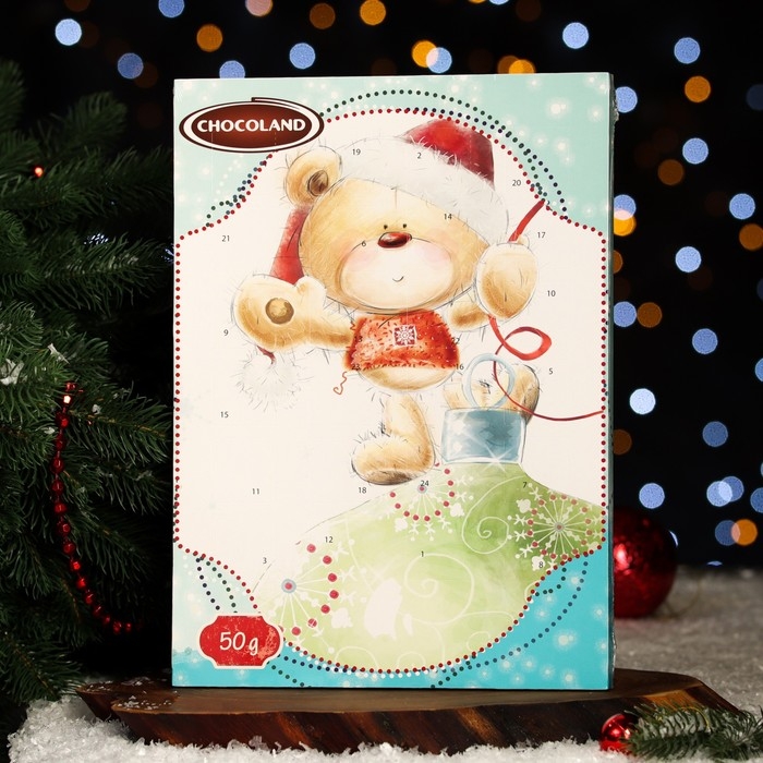 Адвент календарь с мини плитками из молочного шоколада "Мишка" ассорти, 50 г, Новый год