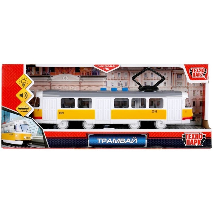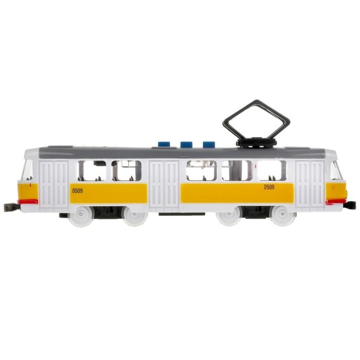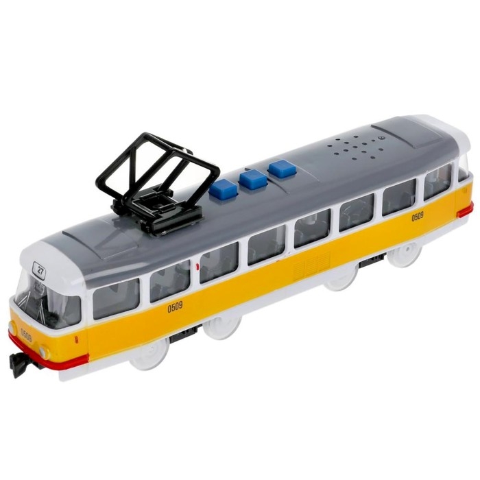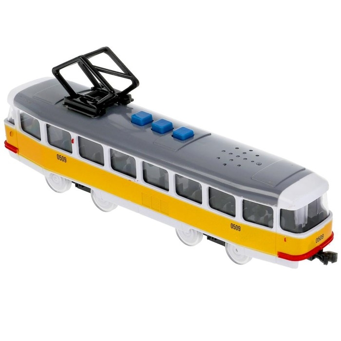 Модель «Трамвай», 21,5 см, 3 кнопки, свет-звук, инерция, цвет жёлтый