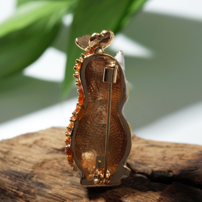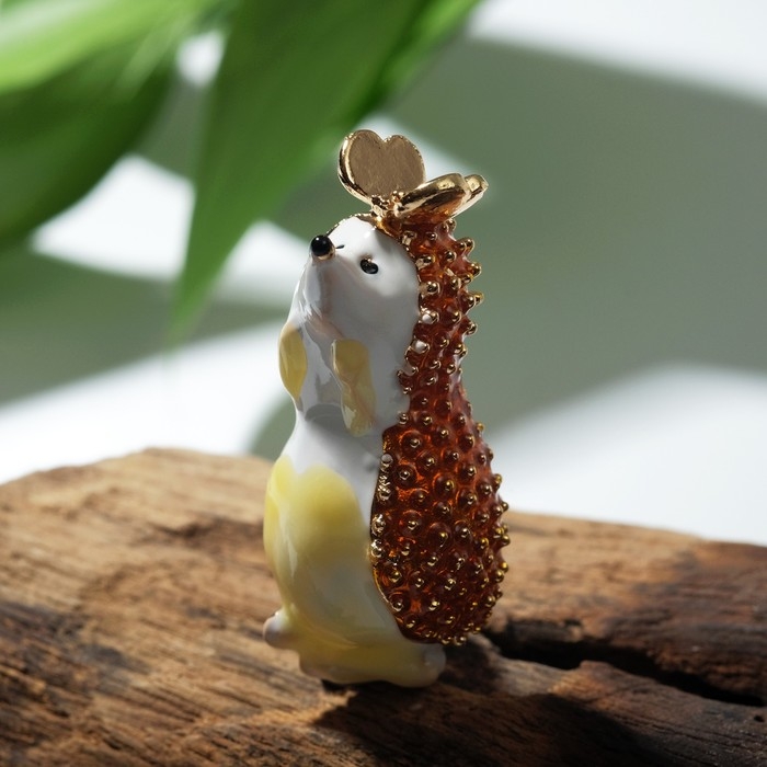 Брошь «Ёжик с цветком», цветной в золоте