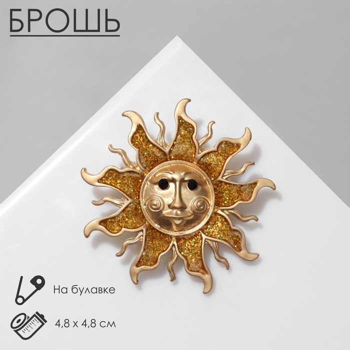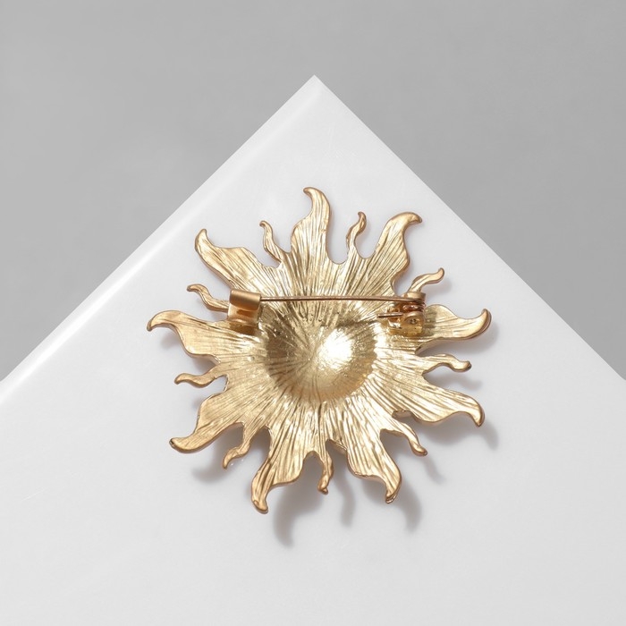 Брошь «Солнце», цвет чёрно-золотой в матовом золоте