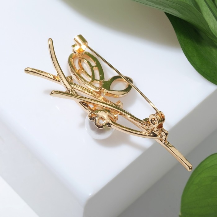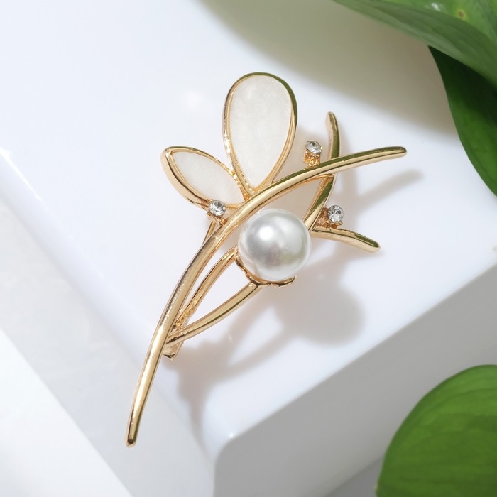 Брошь «Стрекоза» с бусиной, цвет белый в золоте