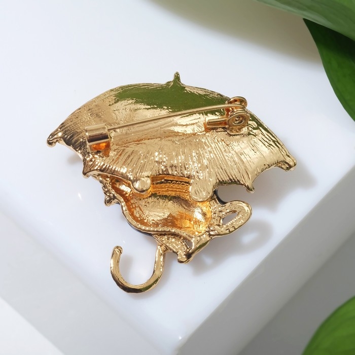 Брошь «Кошка» под зонтом, цвет чёрно-жёлтый в золоте