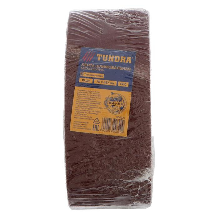 Лента абразивная бесконечная ТУНДРА, на тканевой основе, 75 х 457 мм, Р80, 10 шт.