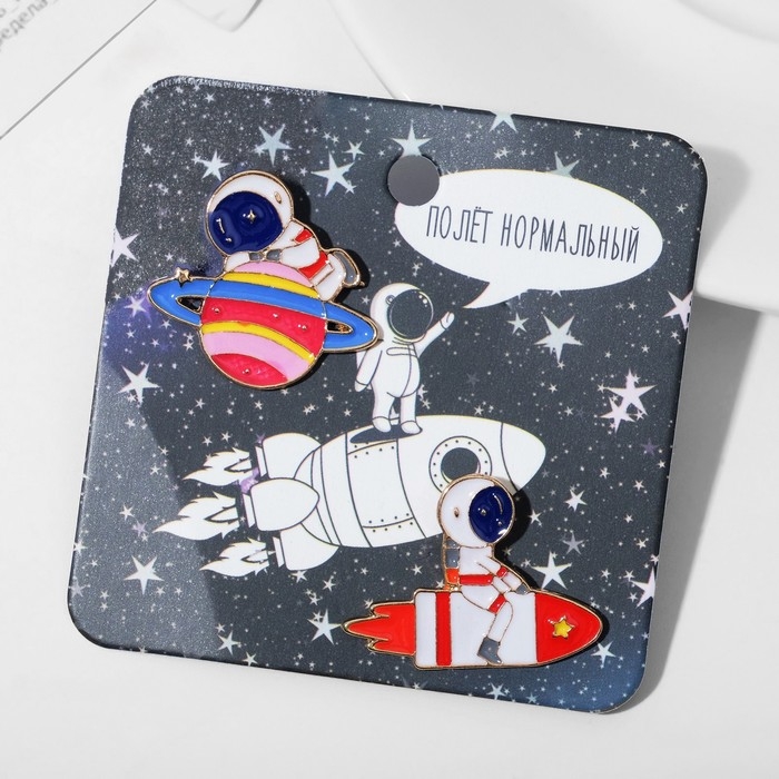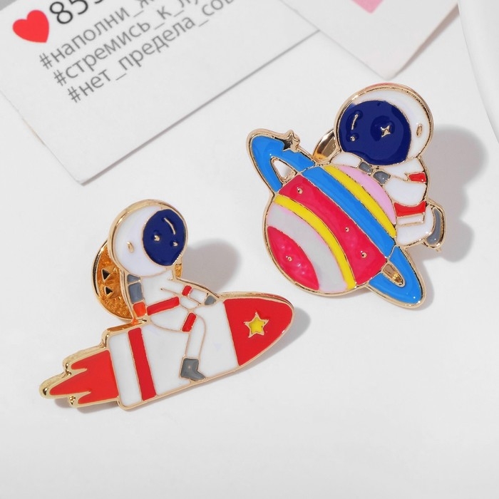 Набор значков (2 шт.) «Космонавты», цветной в золоте