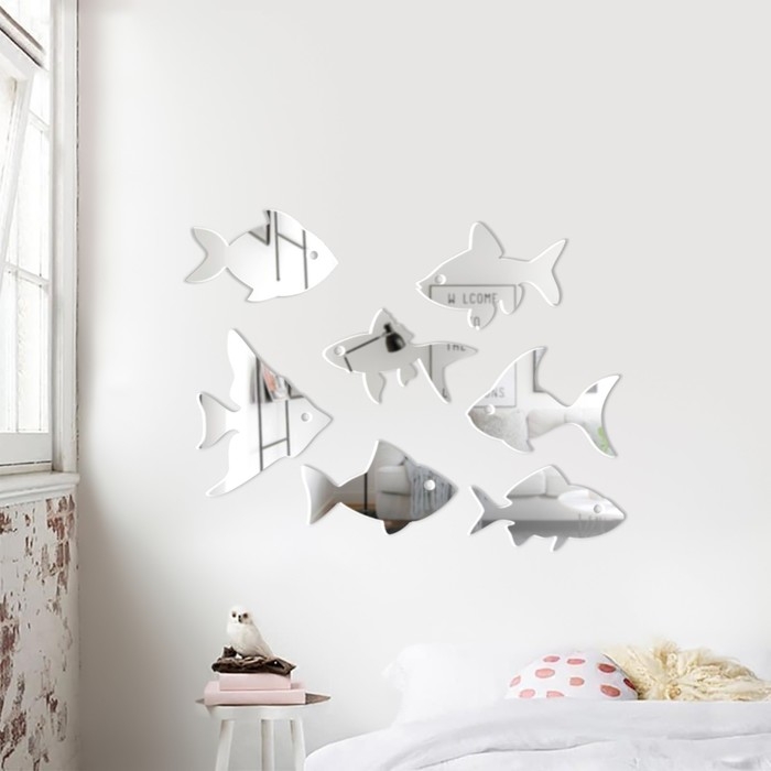 Наклейки интерьерные "Рыбки", зеркальные, декор на стену, набор 7 шт, шт 15 х 16.3 см