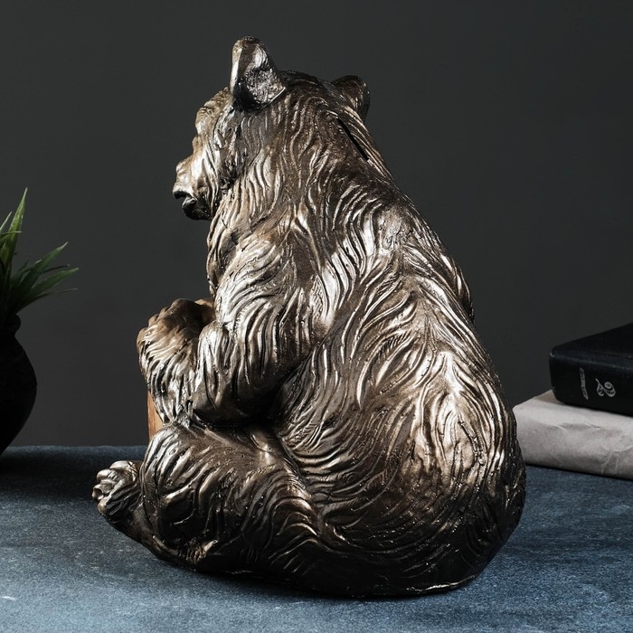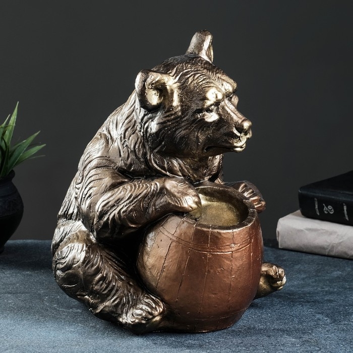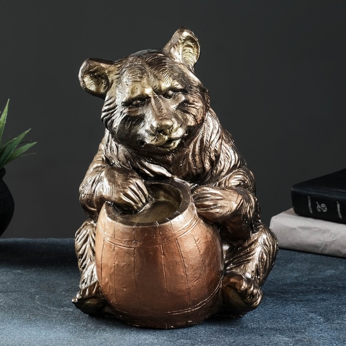 Копилка "Медведь с бочонком" бронза, 27х24х28см