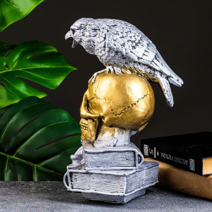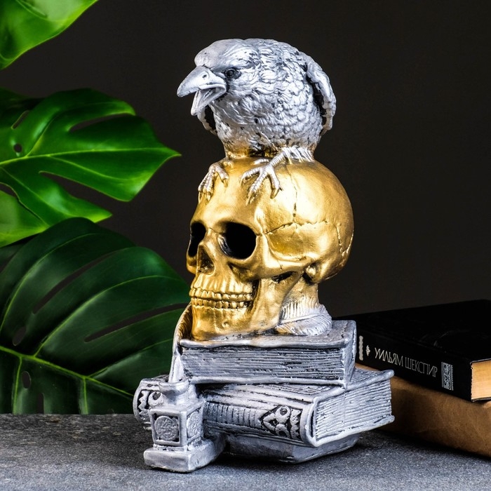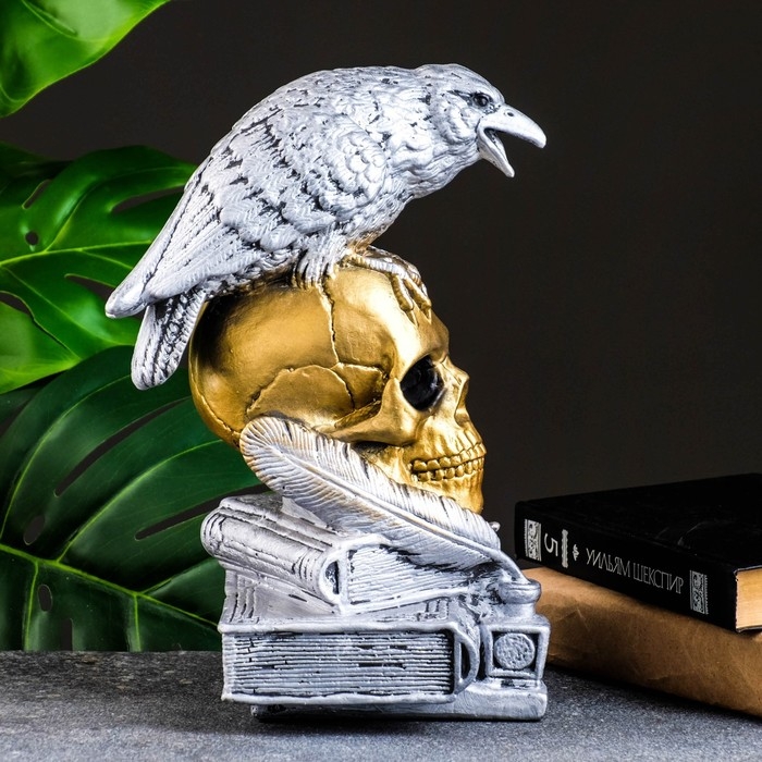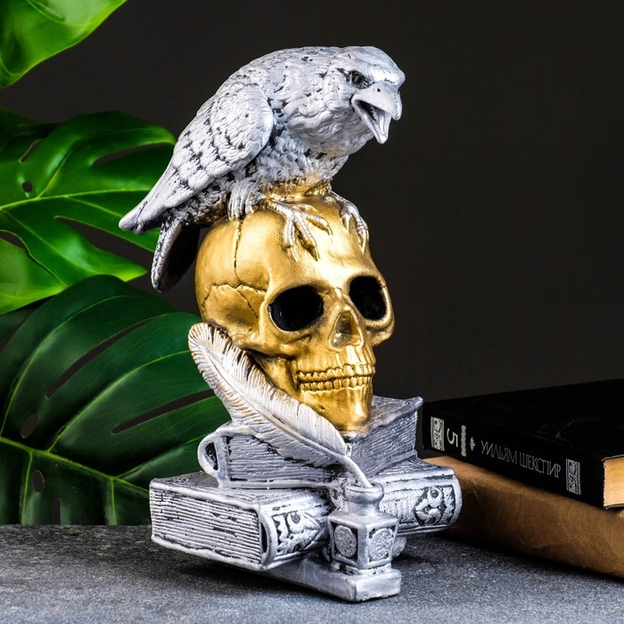 Фигура "Череп с вороном" бронза с серебром, 28см