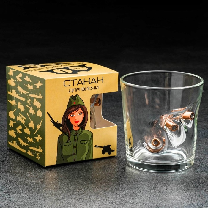 Стакан "Непробиваемый", с пулей, для виски, гравировка, 250 мл