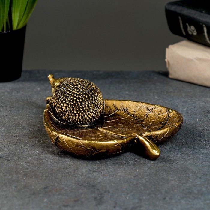 Конфетница "Ежик на листочке" золото, 9x10x10см