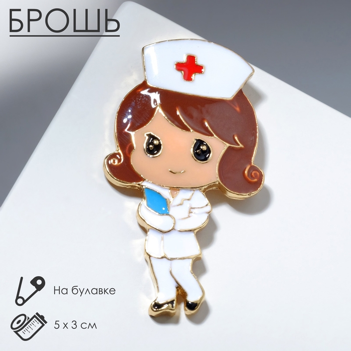 Брошь «Медсестричка» с журналом, цветная в золоте