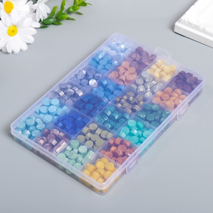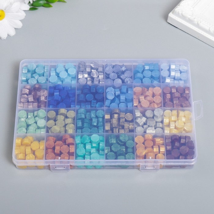 Набор сургуча "Палитра зелёно-голубая" перламутр 24 цвета 19х13х2 см