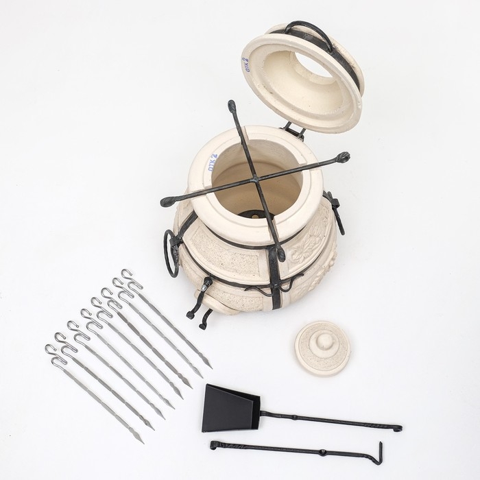 Тандыр "Кочевник" с откидной крышкой, h-63 см, d-45, 52,5 кг, 8 шампуров, кочерга, совок