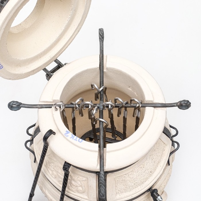 Переносной тандыр Кочевник – незаменимый помощник в приготовлении свежей, вкусной еды на свежем воздухе. Мало того, этот глиняный сосуд поможет согреться в холодную погоду на даче. С древних времён тандыр был верным помощником и спутником кочевых народов. В относительно небольшой ёмкости, диаметром и высотой всего по 45 см, можно одновременно установить 8 шампуров.