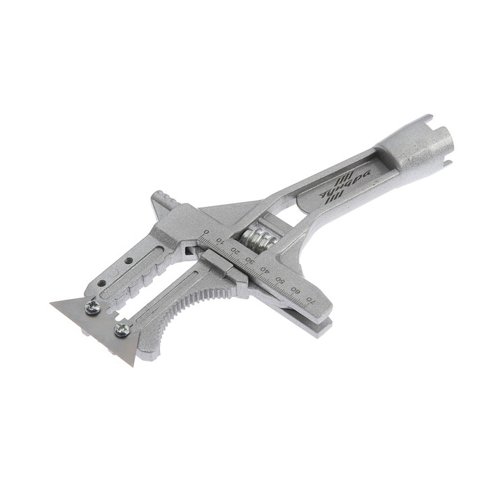 Инструмент оснащён дополнительной функцией в виде съёмных лезвий, благодаря которым увеличиваются возможности работы с ключом. Лезвия можно применять в виде ножа или скребка.