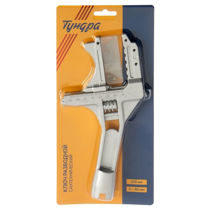 Ключ разводной сантехнический ТУНДРА, укороченная рукоятка, раскрытие губок до 80 мм, 225 мм