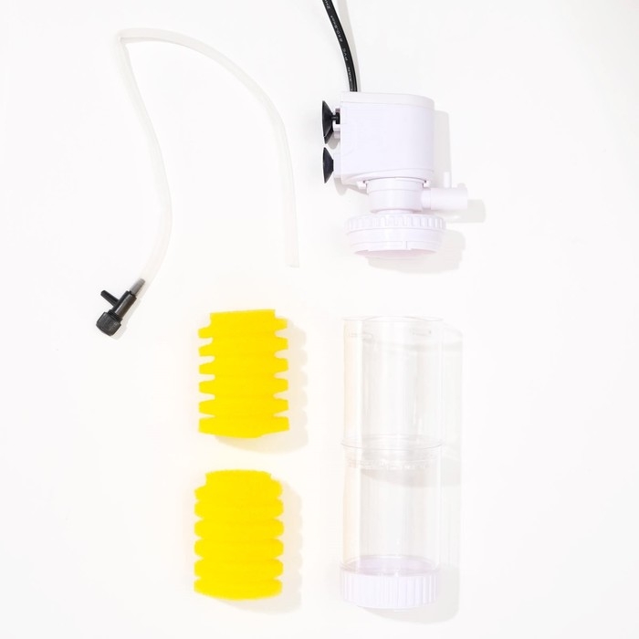 Оснащен двумя секциями для очистки воды: губки улавливают крупные частицы и загрязнения, эффективно очищая воду в аквариуме.
