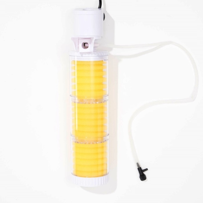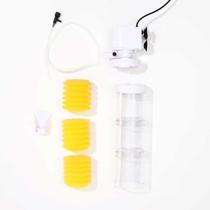 Оснащен тремя секциями для очистки воды: губки улавливают крупные частицы и загрязнения, эффективно очищая воду в аквариуме.