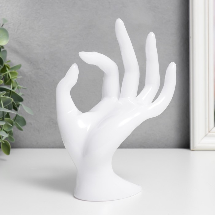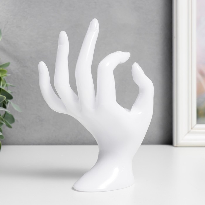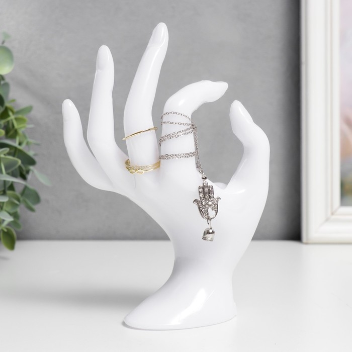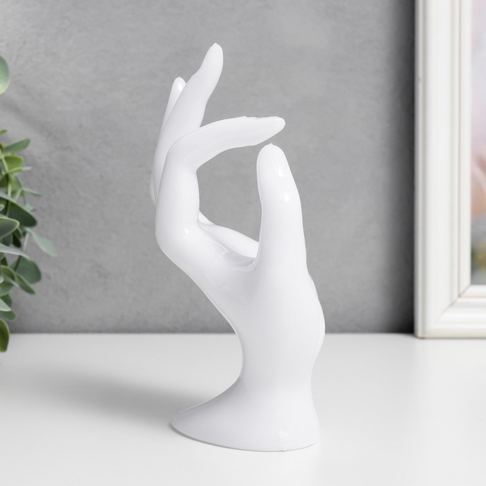 Сувенир полистоун подставка для украшений "Рука" белый 16,5х8 см