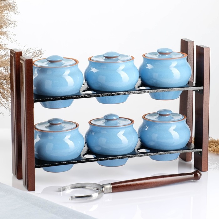 Набор "Вятская керамика №2" 6х0,5 + ухват + полка, голубой