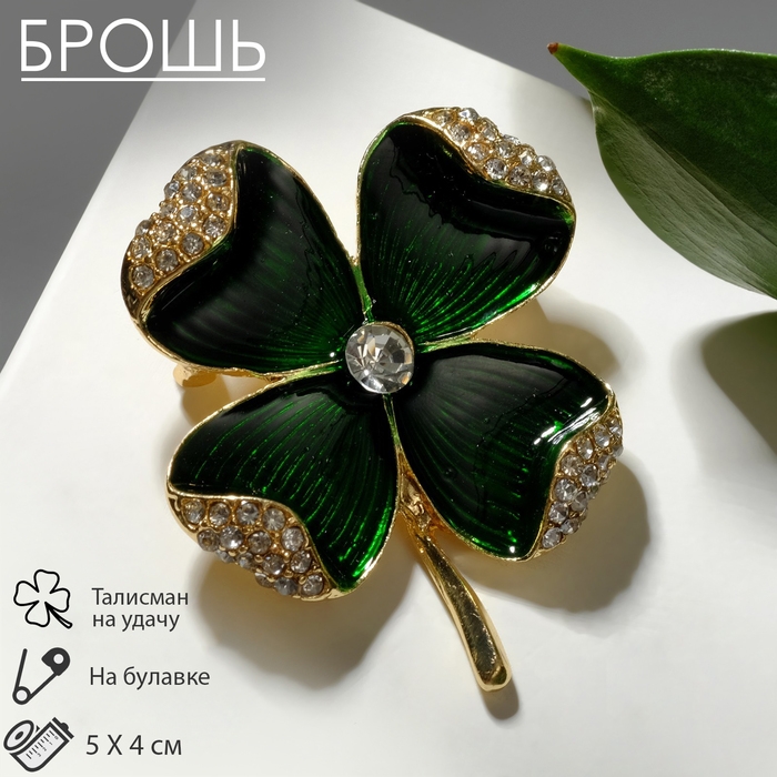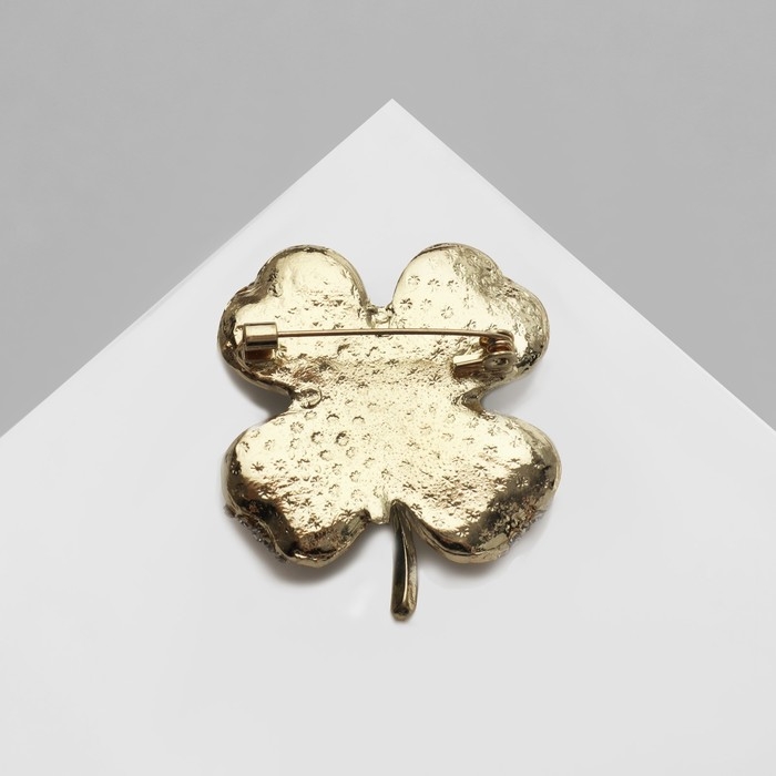 Брошь "Клевер" на удачу, цвет бело-зелёный в золоте