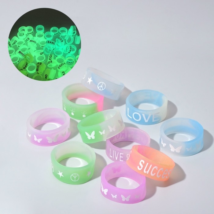 Силиконовое кольцо «Светоотражающее» любовь, набор 10 шт., цвет МИКС