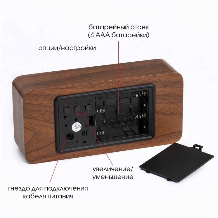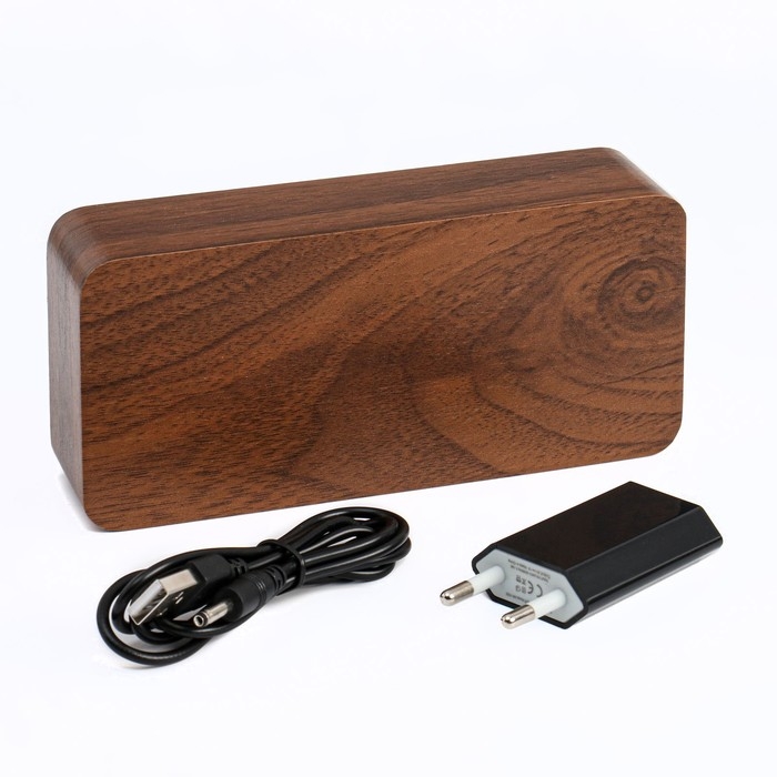 Часы - будильник электронные "Цифра-Т" настольные с термометром, деревянные, ААА, USB