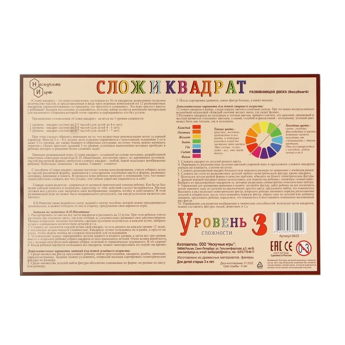 Развивающая доска «Сложи квадрат» 3 уровень сложности