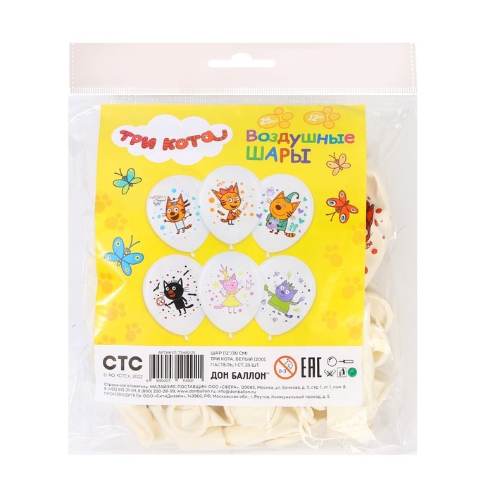 Шар латексный 12" «Три кота: играем вместе», белый, пастель, 1 ст., 25 шт.