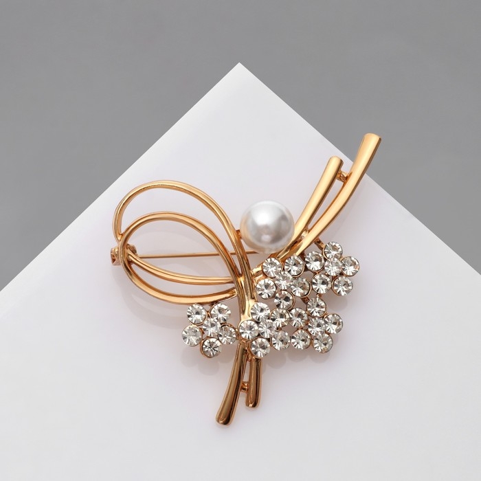 Брошь «Бантик» с жемчужинками, цвет белый в золоте