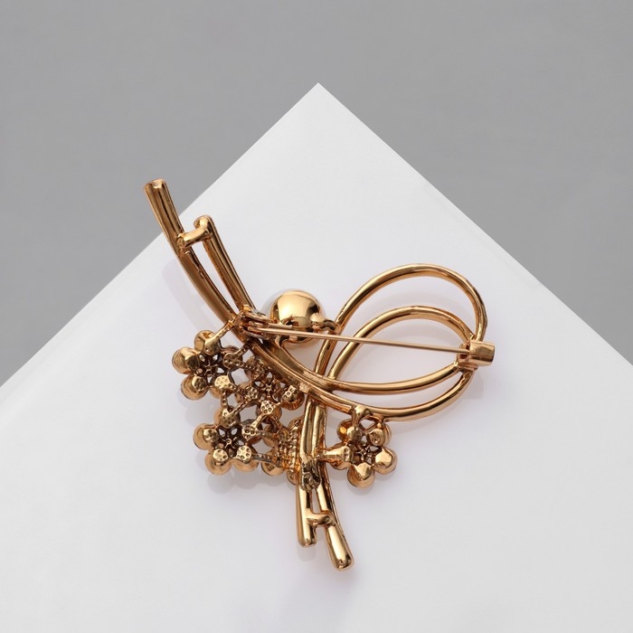 Брошь «Завиток» с бусиной и цветами, цвет белый в золоте