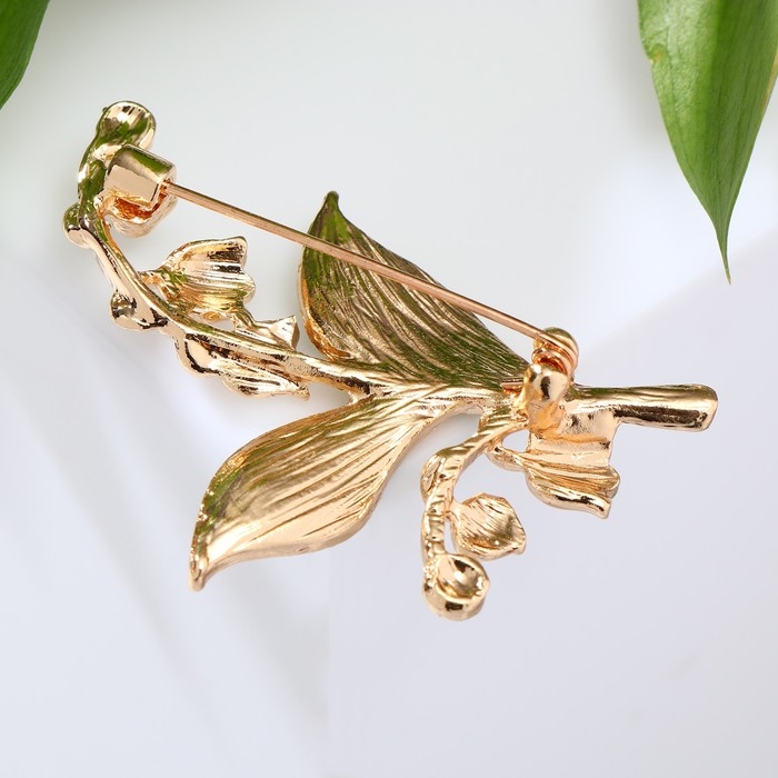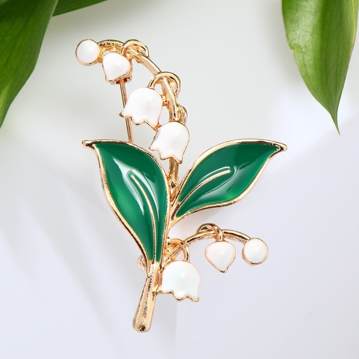 Брошь «Ландыши» две веточки, цвет бело-зелёный в золоте