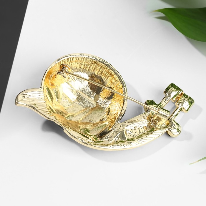 Брошь «Улитка», цвет бело-зелёный в золоте