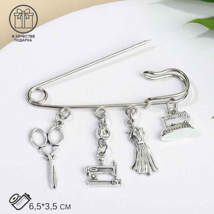 Булавка «Швея», 6,5 см, цвет белый в чернёном серебре