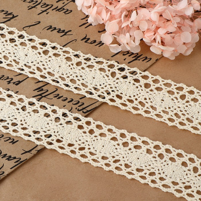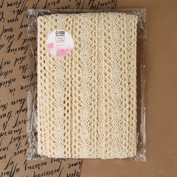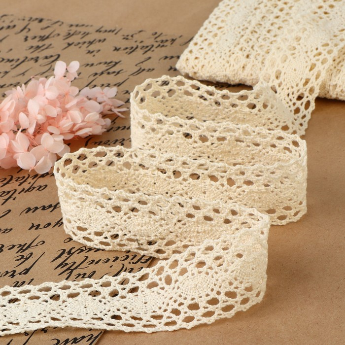 Кружево вязаное, 38 мм × 15 ± 1 м, цвет бежевый