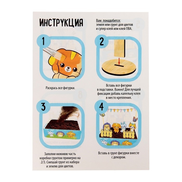 Набор для опытов «Мой мини-сад: Зверята», вырасти травку
