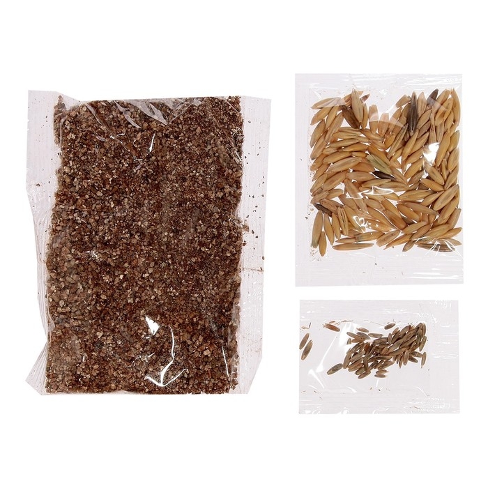 - В комплекте семена декоративной травы — всё готово к выращиванию.