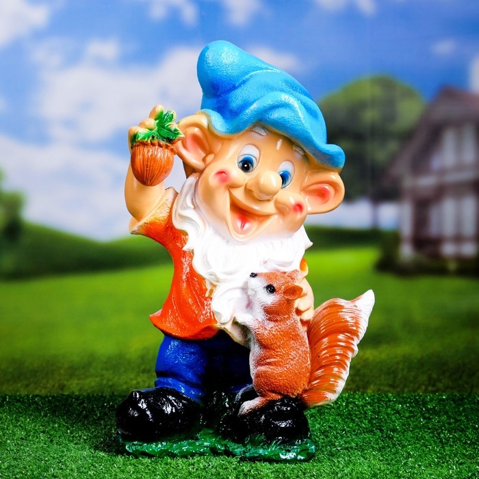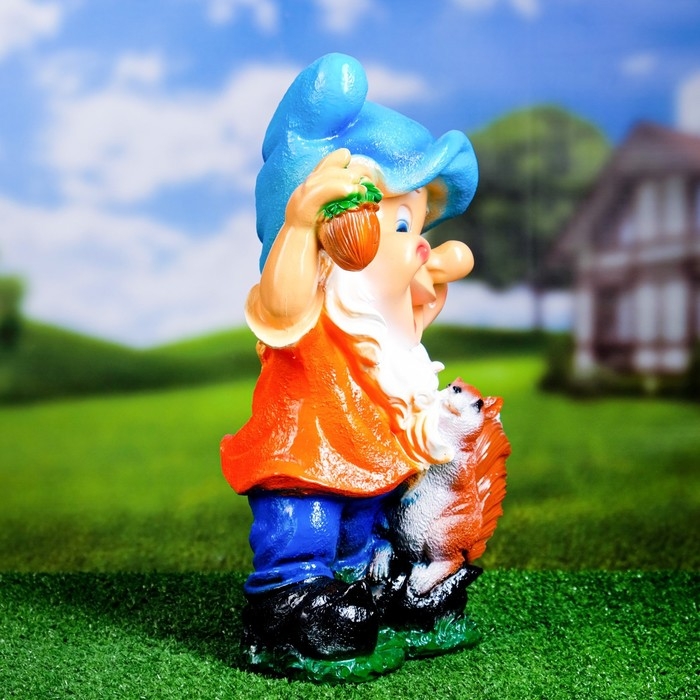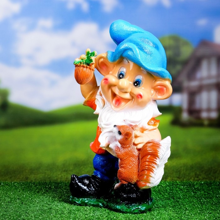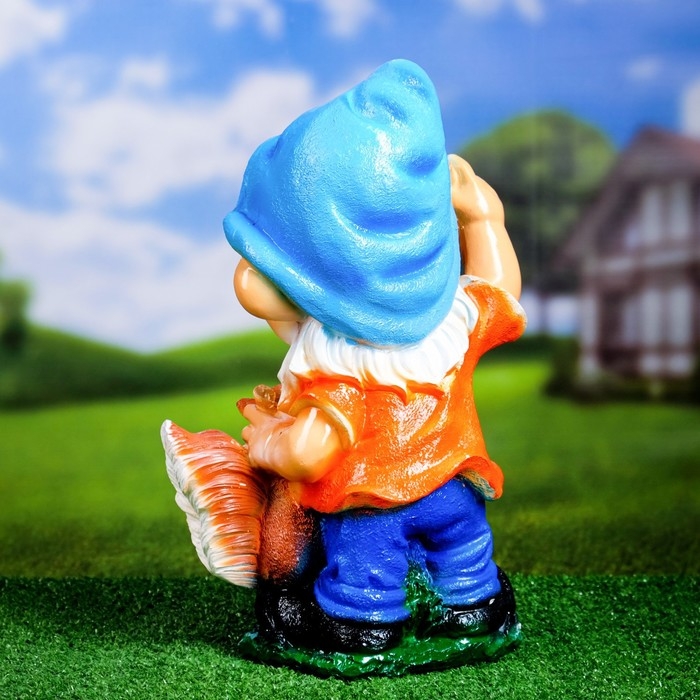 Садовая фигура "Гном с белкой" 17х25х39см