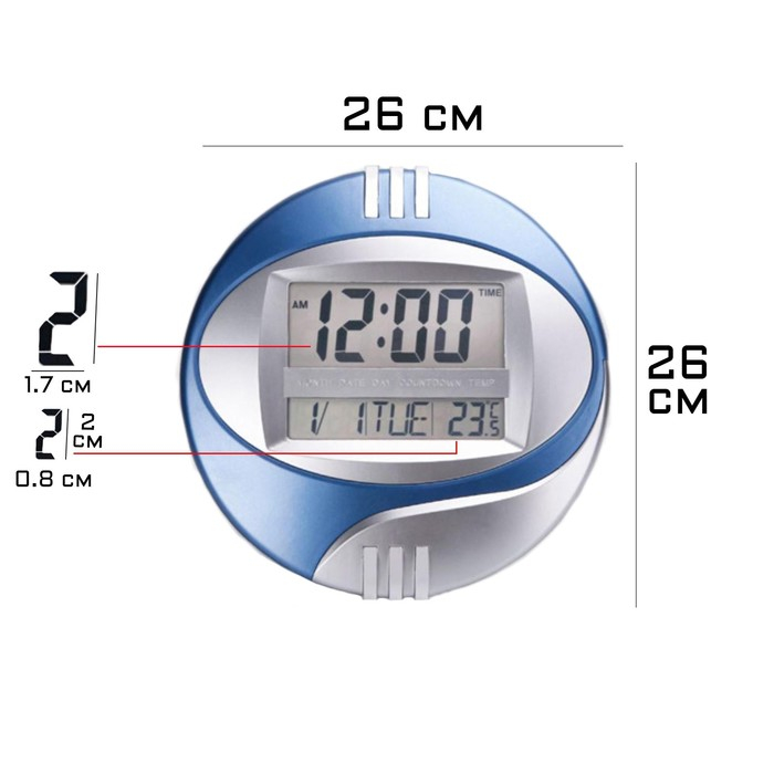 Часы электронные настенные, настольные, с будильником, 26 х 26 см, 2 АА, синие