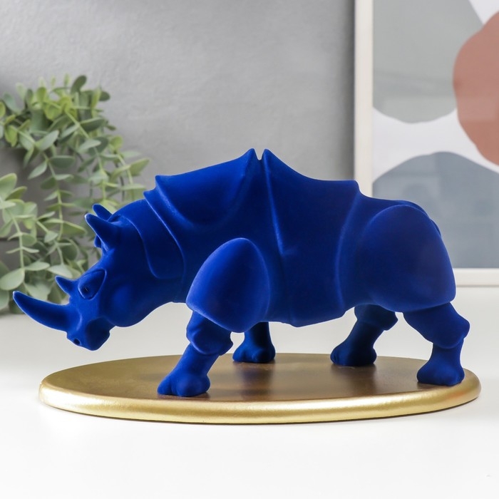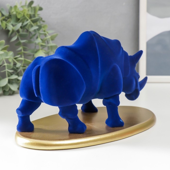 Сувенир полистоун "Синий носорог на подставке" флок 12,8х22,5х13,5 см