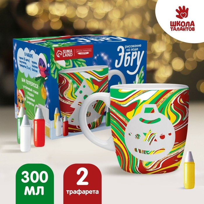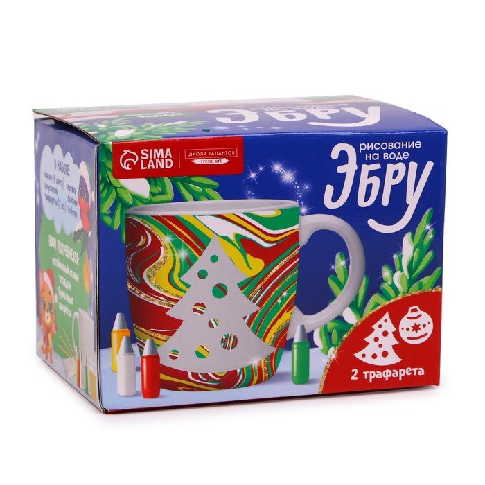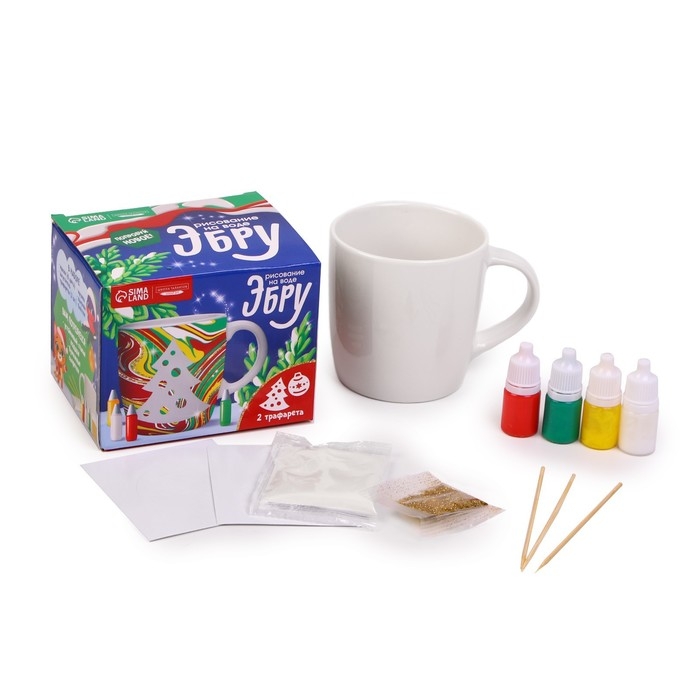 Кружка под раскраску на новый год. Рисование на воде: эбру «Ёлочка», новогодний набор для творчества