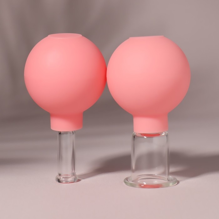 Набор вакуумных банок для массажа, стеклянные, d 1,5/3,5 см, 2 шт, цвет розовый