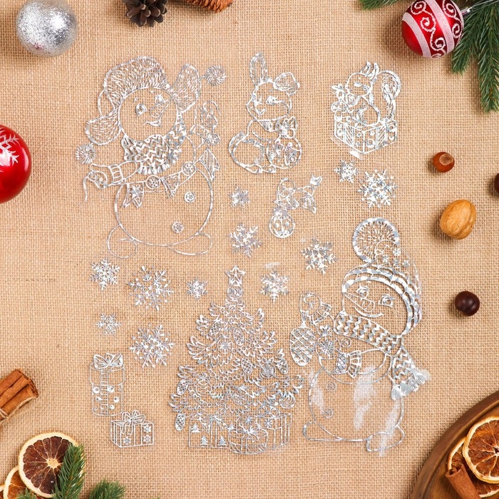 Набор наклеек оформительский "Новогоднее веселье" голографическая фольга, 49,3х33,6см