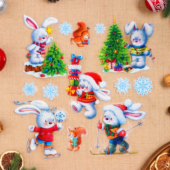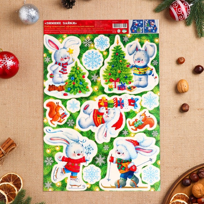 Набор наклеек оформительский "Зимние зайки" 49,3х33,6см