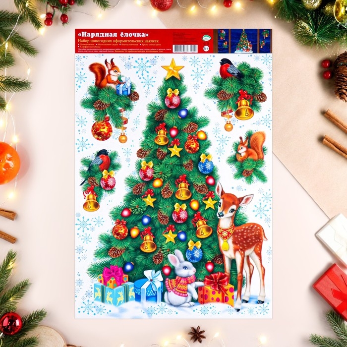 Набор наклеек оформительский "Нарядная ёлочка" 49,3х33,6см