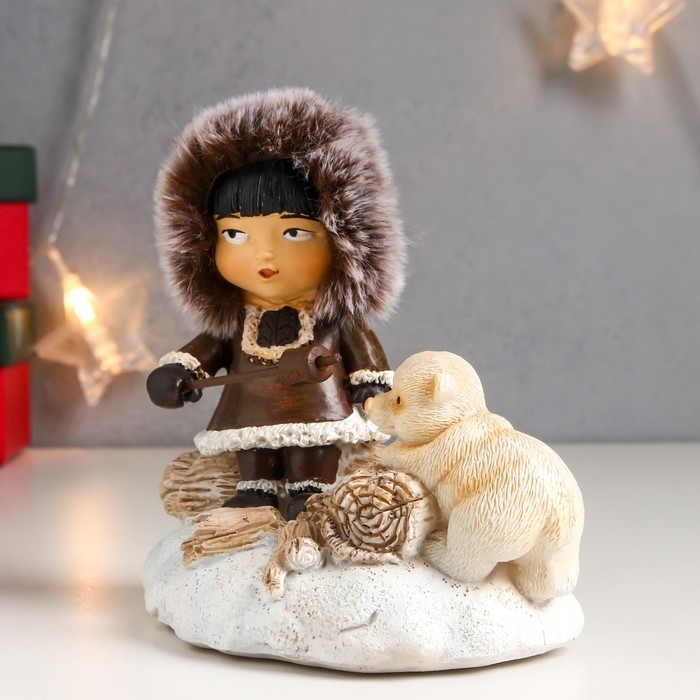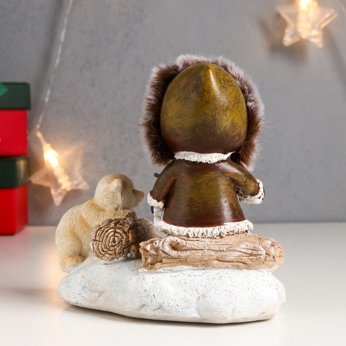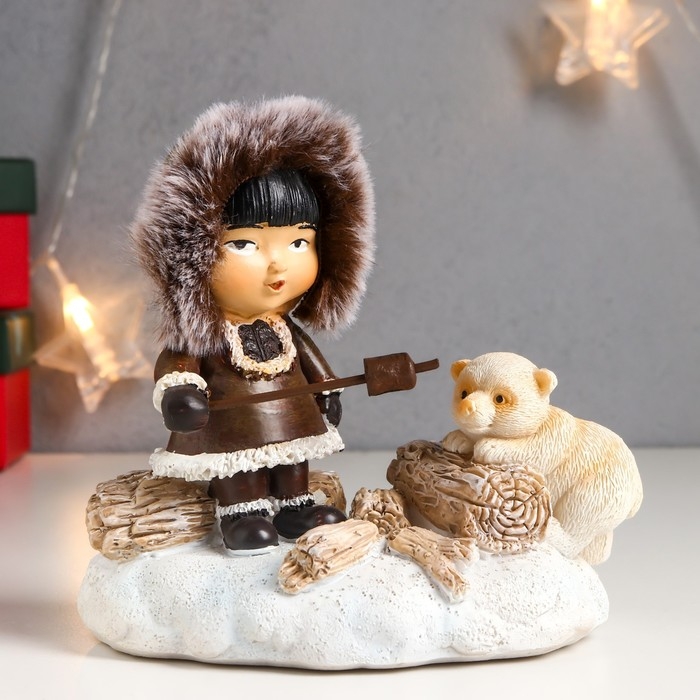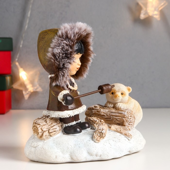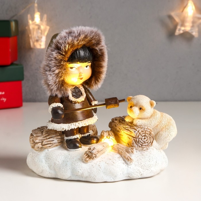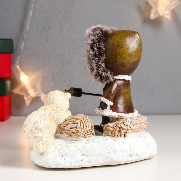 Сувенир полистоун световой "Малыш и белый медвежонок - посиделки у костра" 12,5х8х13,5 см