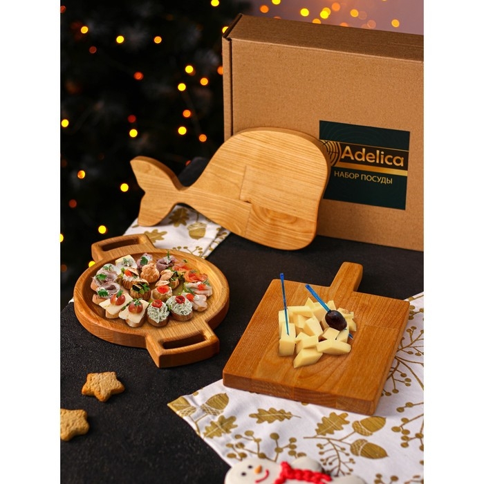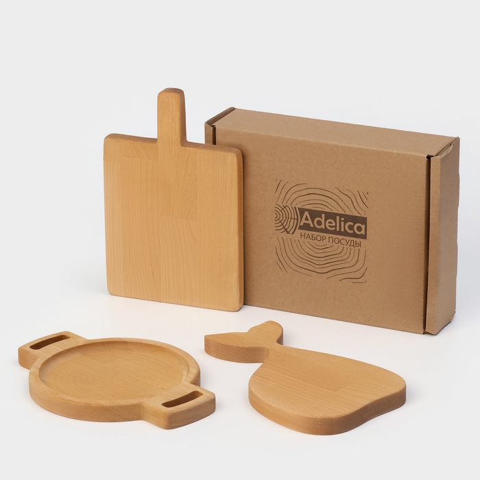 Подарочный набор деревянной посуды Adelica, доска разделочная и для подачи 3 шт, берёза
